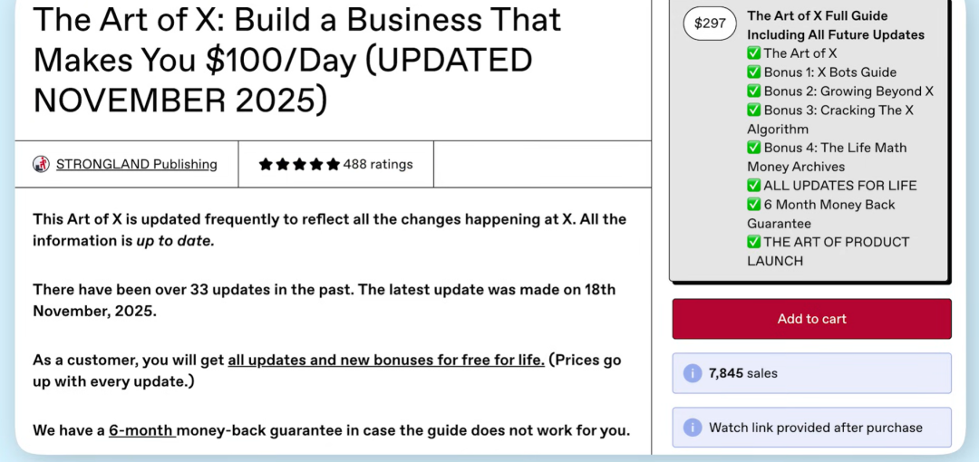 El tercer producto son cursos mini. Puedes pensar que hacer cursos requiere un equipo y videos, Alto costo. En realidad no es tan complejo. No necesitas grabar video ni tutoriauno a uno, simplementeccribe el contenido del curso. Cada modulo del curso se muestra en tarjetas con instrucciones. Todo esto puedes completarlo automaticamente con IA y ChatGPT, no necesitas experiencia previa. En Gumroad, una persona llamada Strong Land Publishing tiene un curso con 488 evaluaciones a $297 dolares. Las ventas calculadas son $2,329,000 dolares. Imagina, un solo curso mini puede ganar tanto, esa es la magia y el apalancamiento de los productos digitales.