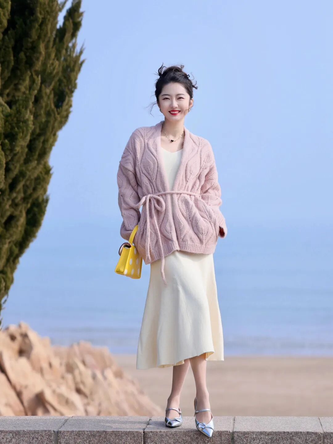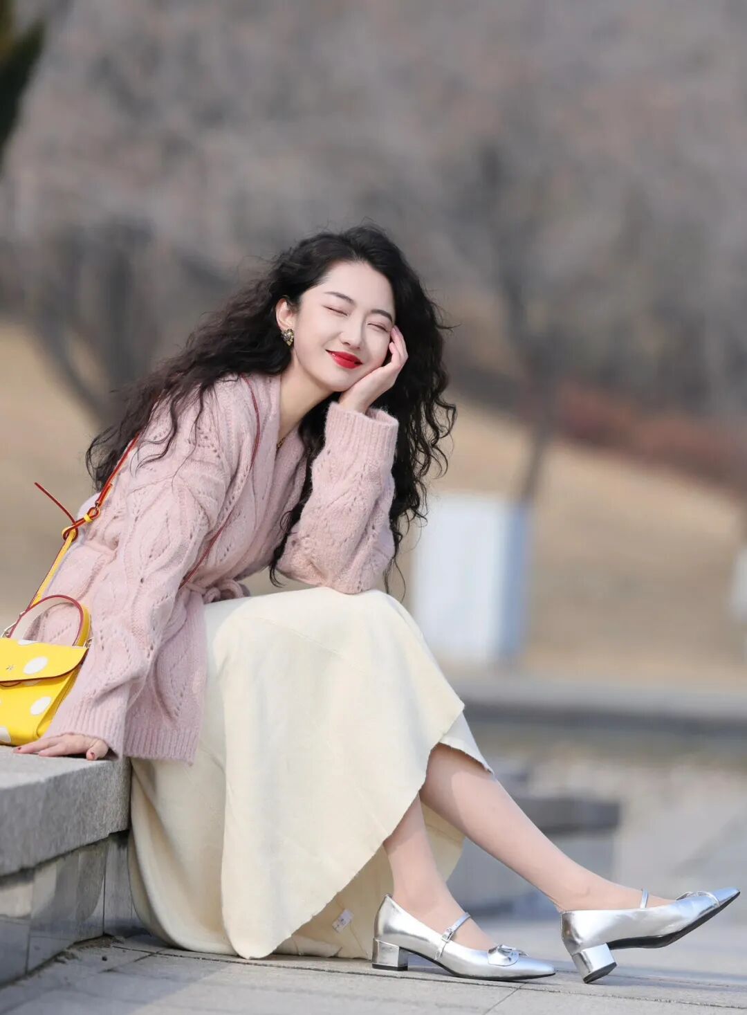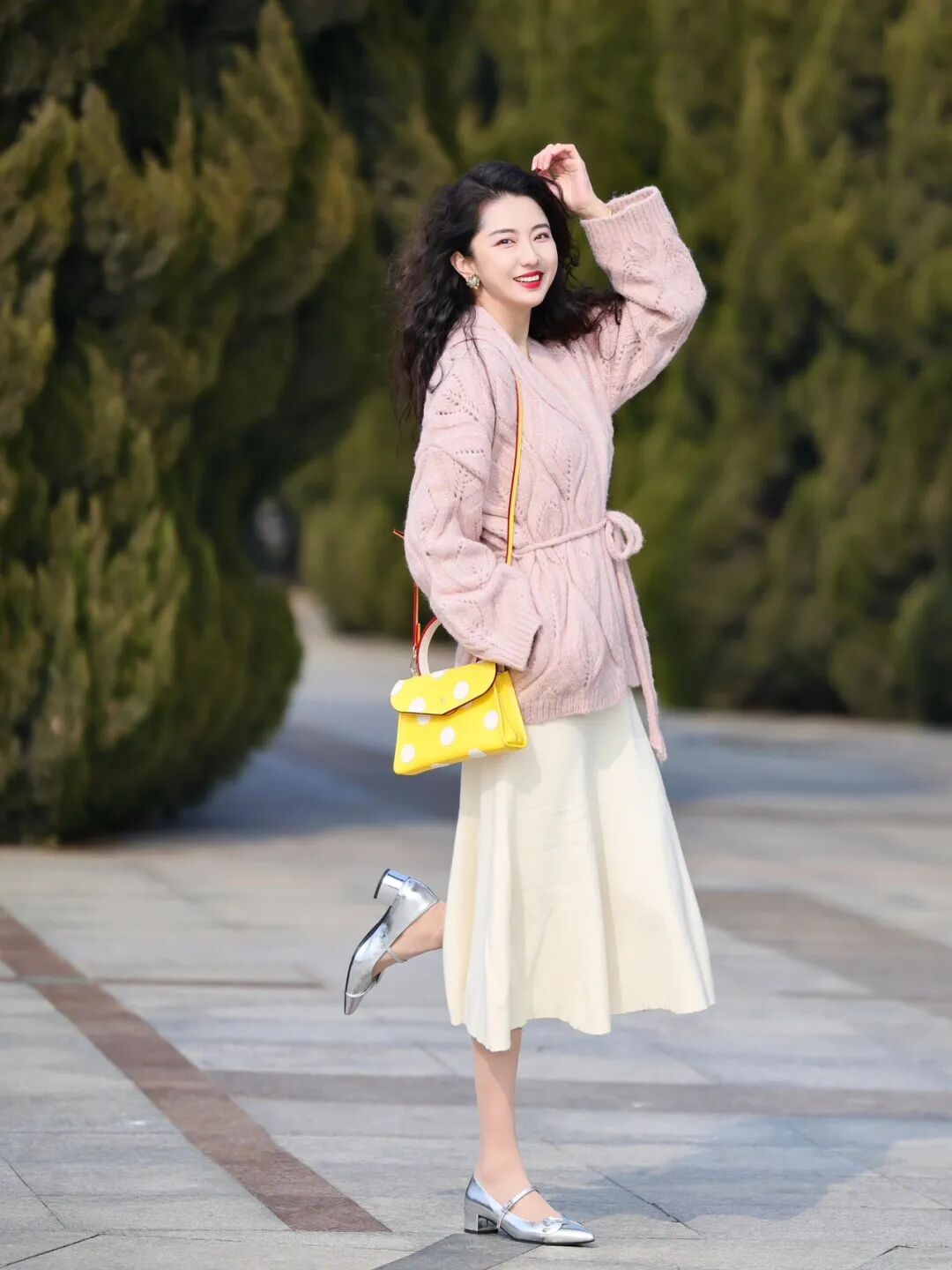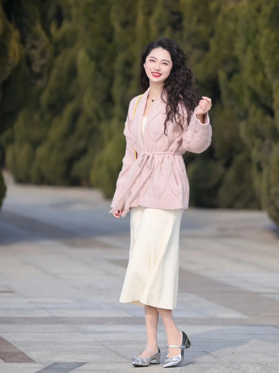 2: Piernas cruzadas, manos en bolsillo. Para fotos de cuerpo completo de frente, no te pares muy rigida. Cruza tus piernas hacia adelante, lo que現优雅修饰腿型.La pierna cercana a la camara puede tocar el suelo con la punta del pie.